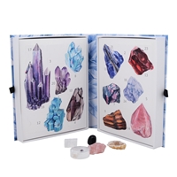 Dieses aufwendig gestaltete Adventsbuch (Größe 24x19x5,7 cm ) enthält 12 verschiedene Sorten beliebter Edelsteine. Jede Steinsorte ist einmal als Rohstein und einmal als polierter Stein enthalten (z. B. Aquamarin, Rosenquarz, Lapis Lazuli oder schwarzer Turmalin.