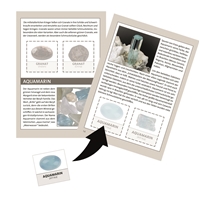 In dem Kalender ist ein Heft mit Infos über die Mineralien enthalten. Dazu gibt es zu jedem Stein einen Sticker zum einkleben in das Heft (Maße 10,5 x 14,8 cm).